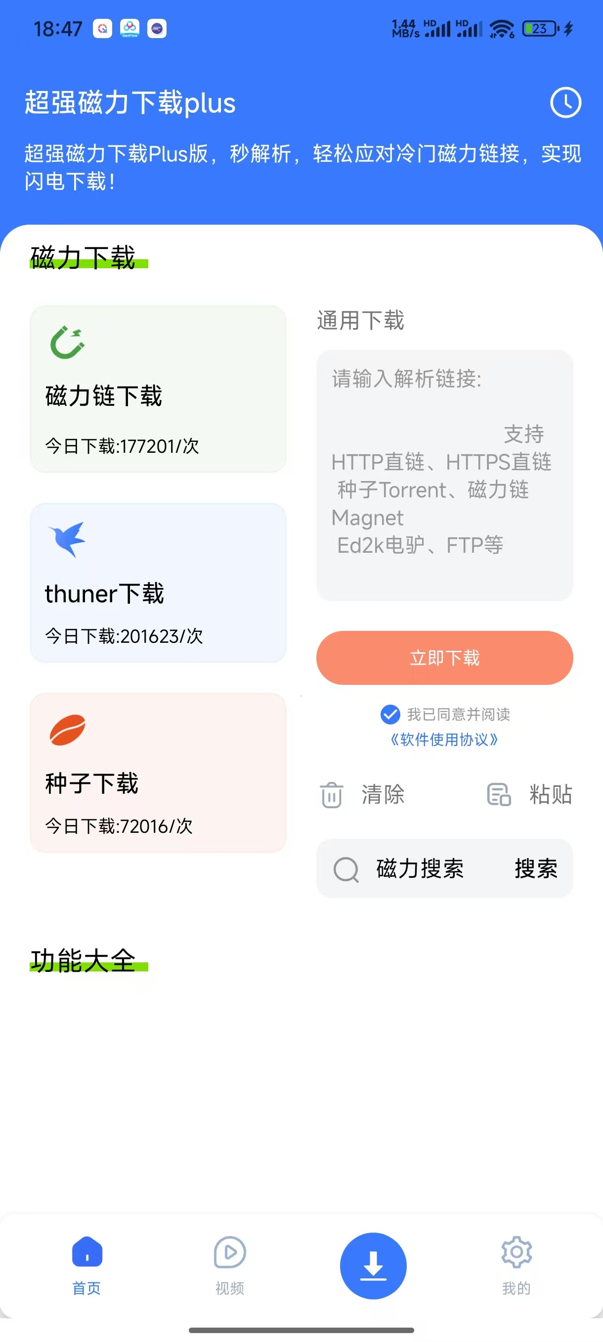 超强磁力下载Plus是安卓全能磁力下载神器,全协议下载+不限速+边下边播,冷门资源也能轻松搞定,下载体验拉满,内置大量美女视频